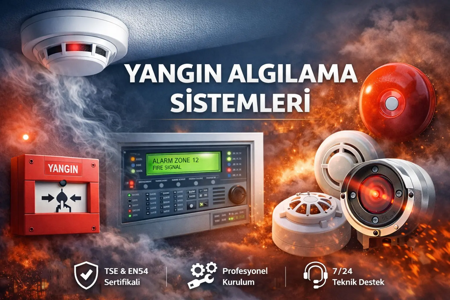 Yangın algılama sistemleri, yangın tehlikesini henüz başlangıç aşamasındayken tespit ederek can ve mal kaybını önlemeyi amaçlayan elektronik güvenlik çözümleridir. Duman, ısı veya alevi algılayan sensörler sayesinde tehlike anında sesli ve görsel uyarılar verilir, gerekli durumlarda otomatik söndürme ve bina otomasyon sistemleri devreye girer.